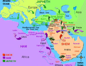 Mitzraim, Y-chromosomal Haplogroup E1b. Nation that settled in upper and lower Egypt in North Africa.
